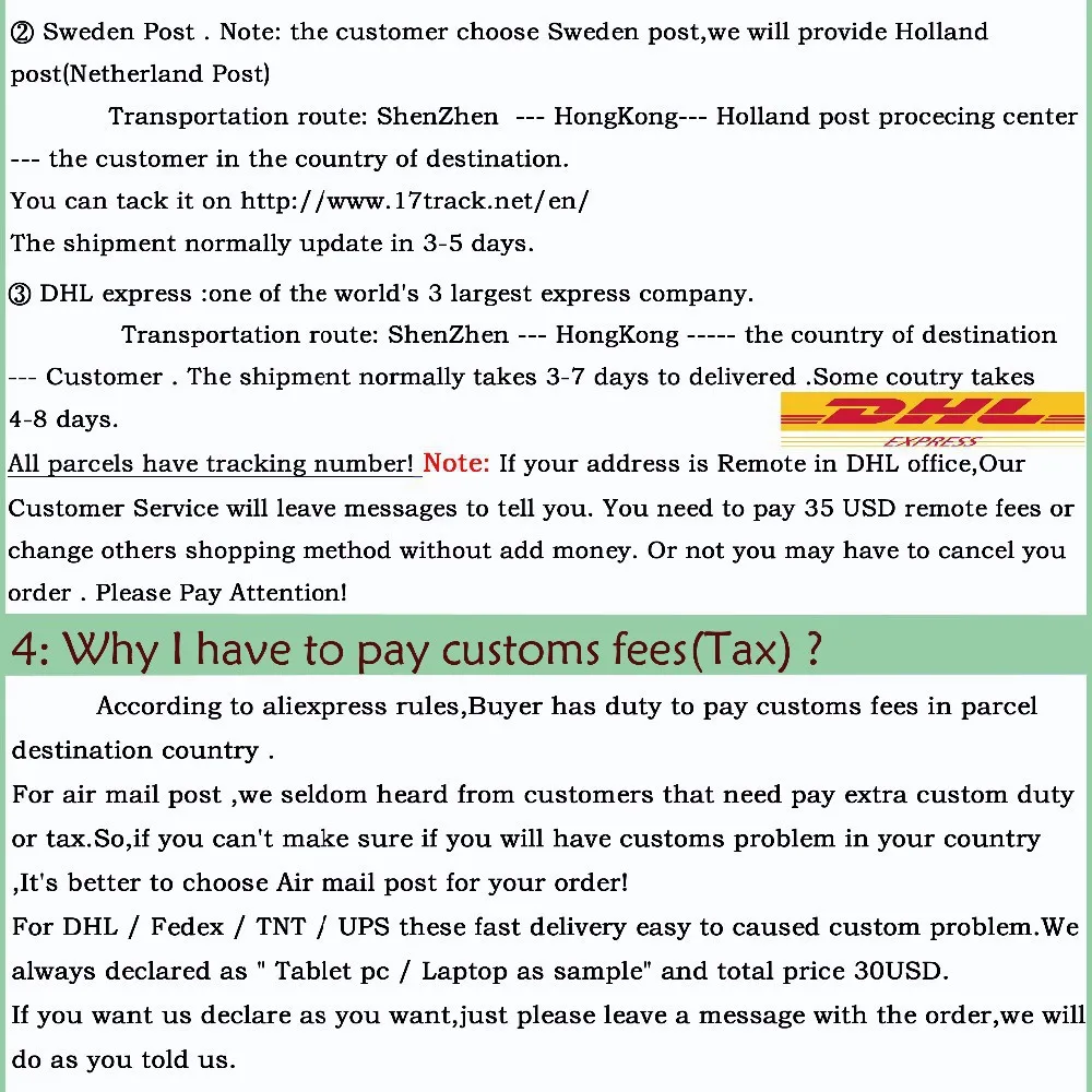 Orders dispatch within 48h. after you make the order. All items can be shipped by DHL, EMS,FedEx,Swiss Post,Singapore Post ,Sweden Post,or China Post.