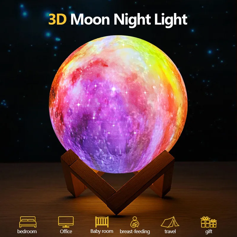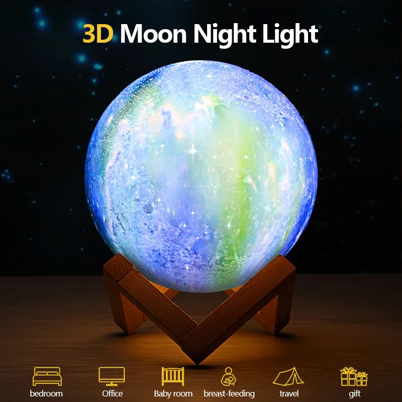 3D Printer Moon LED Atmosphere Lamp Home Office Bedroom decoration Christmas X’mas New Year Smart Creative Gift Night lights