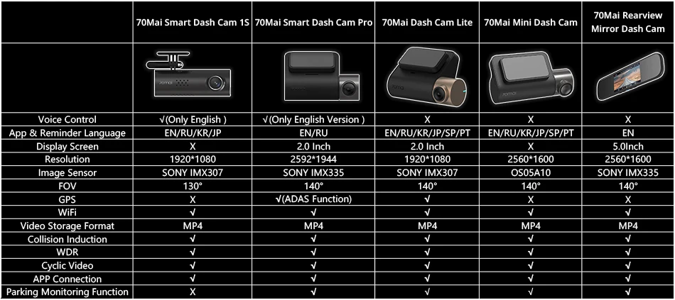 | Model Number | 70Mai Smart Dash Cam 1S |
