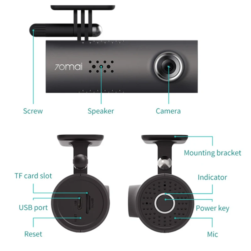 Package Including: 70mai Dash Cam + 3.5M Micro USB Charing Cable + Car Charger