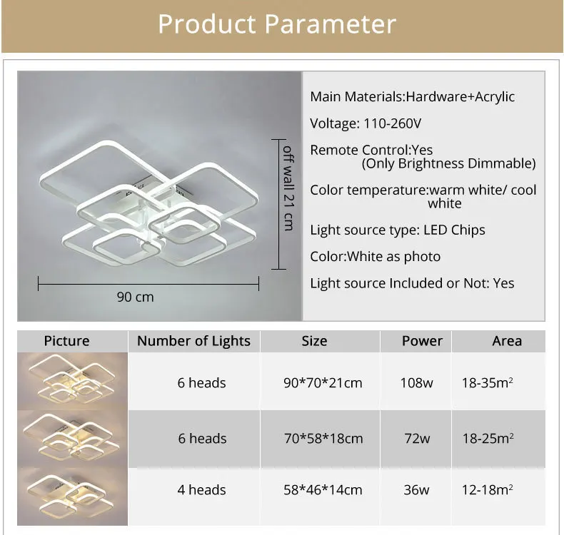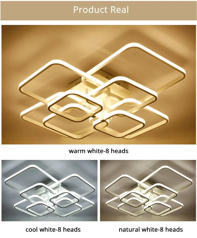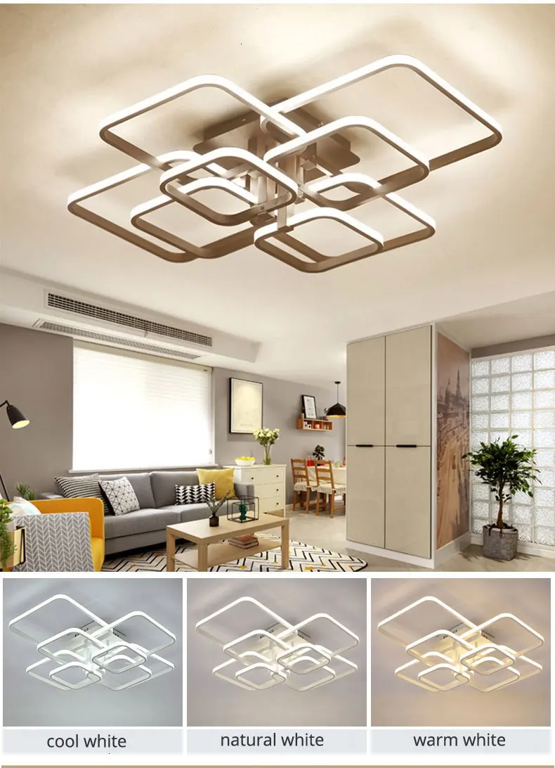 Acylic Ceiling Lights Square Rings For Living Room Bedroom Home AC85-265V Modern Led Ceiling Lamp Fixtures lustre plafonnier