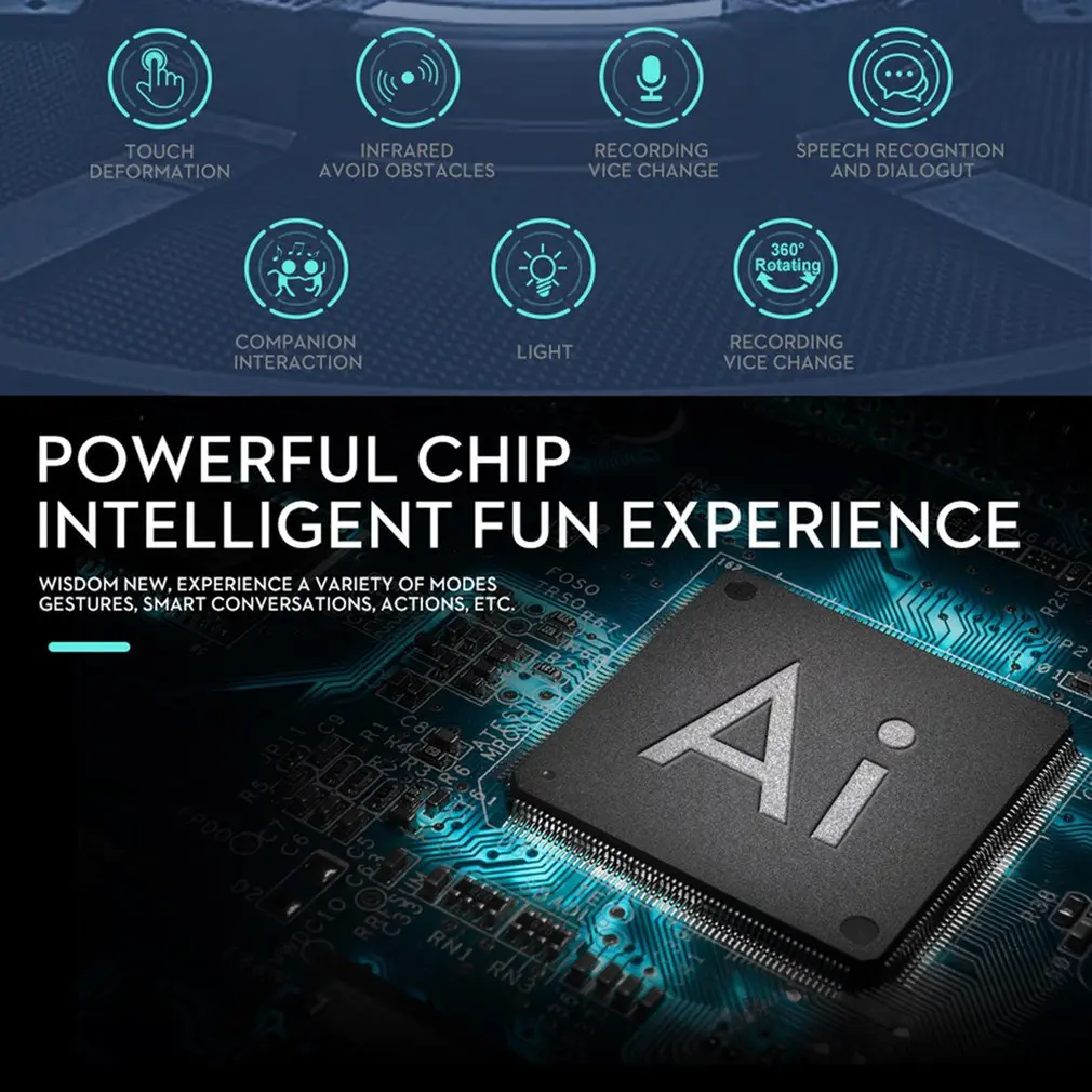 Function:Touch deformation, infrared avoid obstacles, recording voice change, speech recognition and dialogut, companion interaction, light, 360 degree rotating