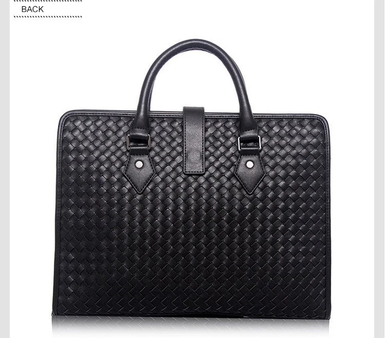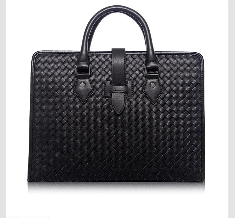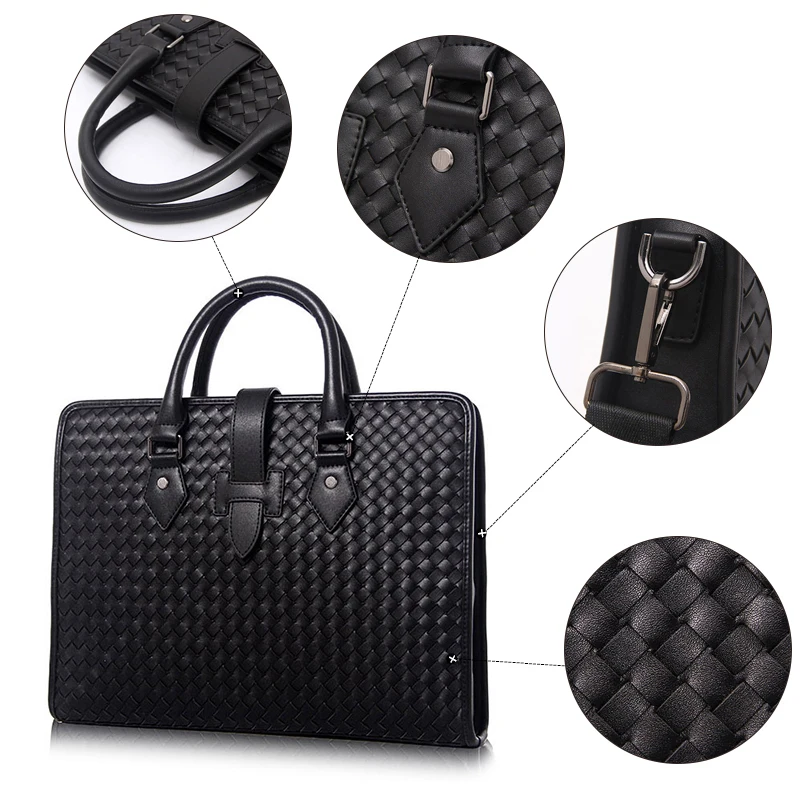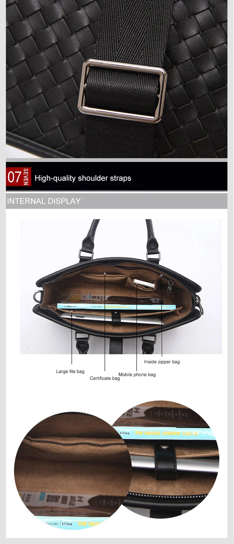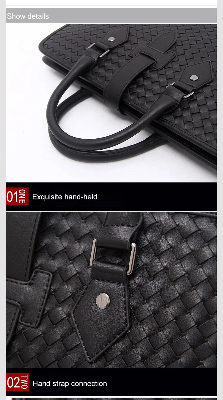 Business Bag Briefcase Leather Woven Pattern Zipper Buckle With Shoulder Handbag Mens Business Bag