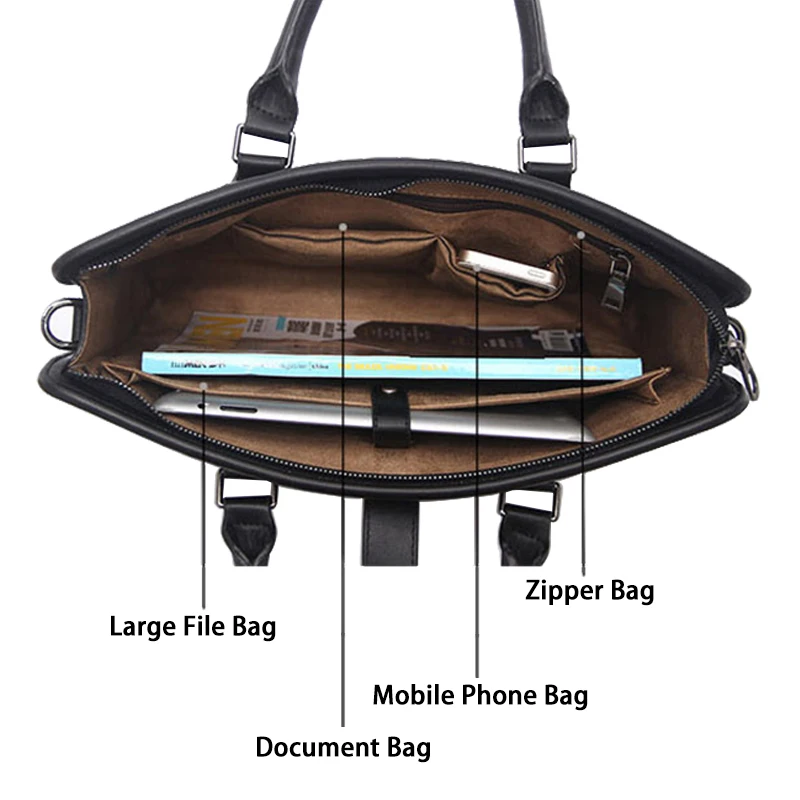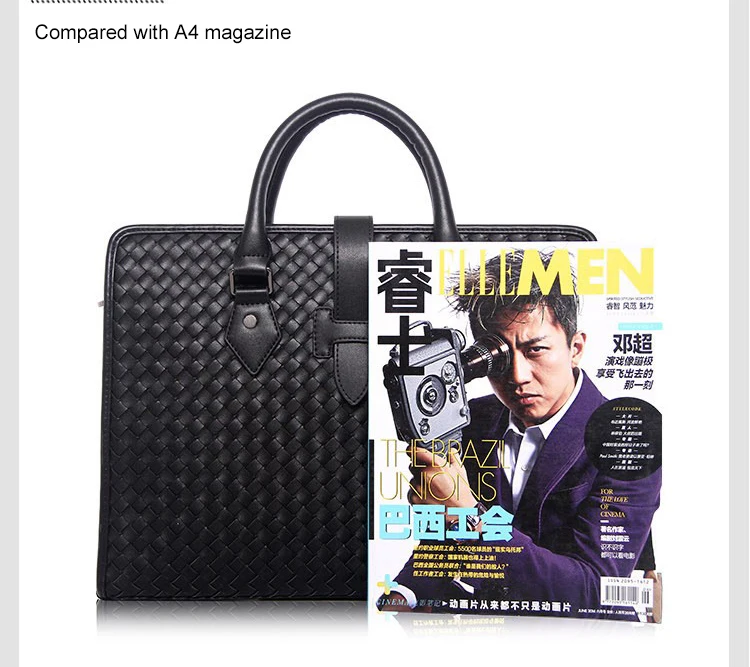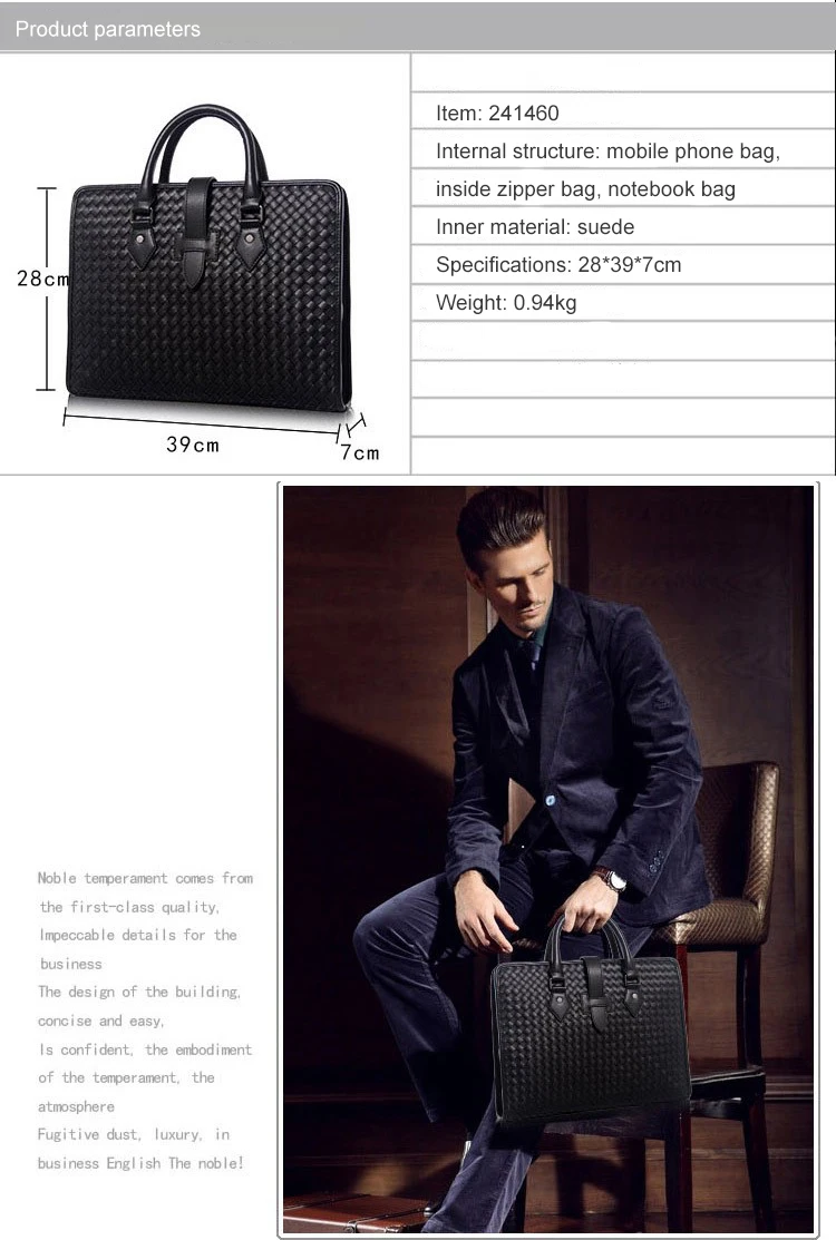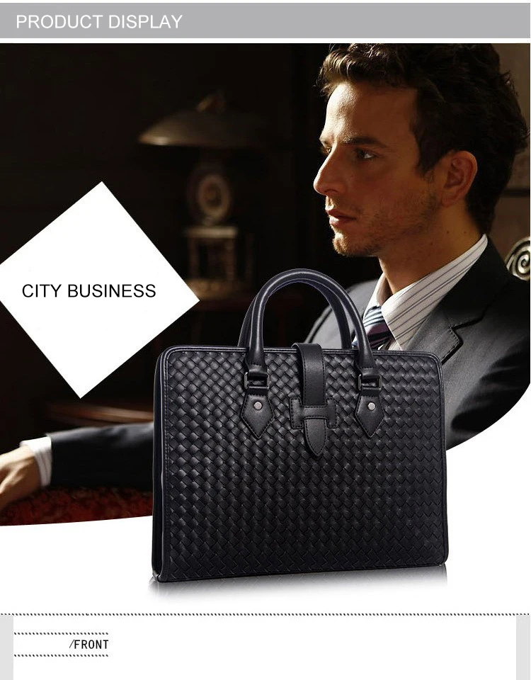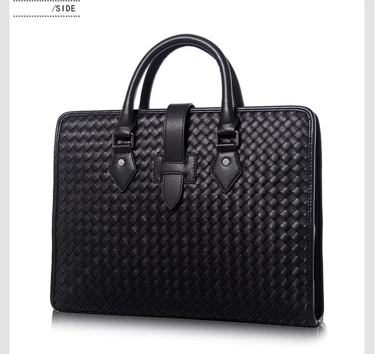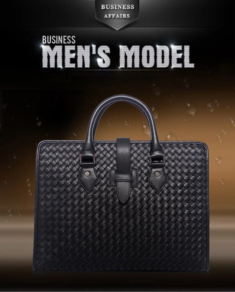 Business Bag Briefcase Leather Woven Pattern Zipper Buckle With Shoulder Handbag Mens Business Bag