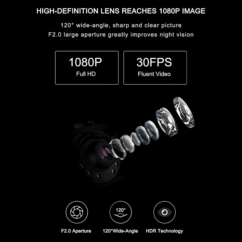 Car DVR Dash Camera Full HD 1080P Car Recorder 120-Degree Wide Angle Car DVR Night Vision Dash Cam Video CAM Corder Windsheild