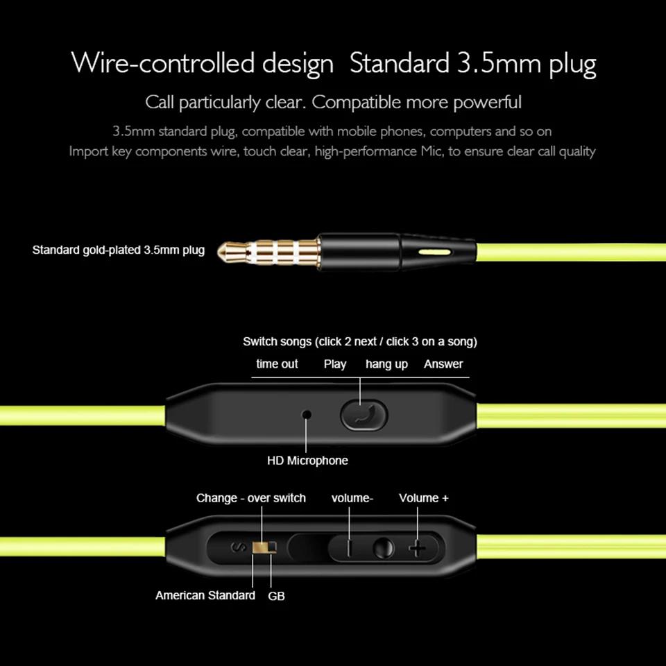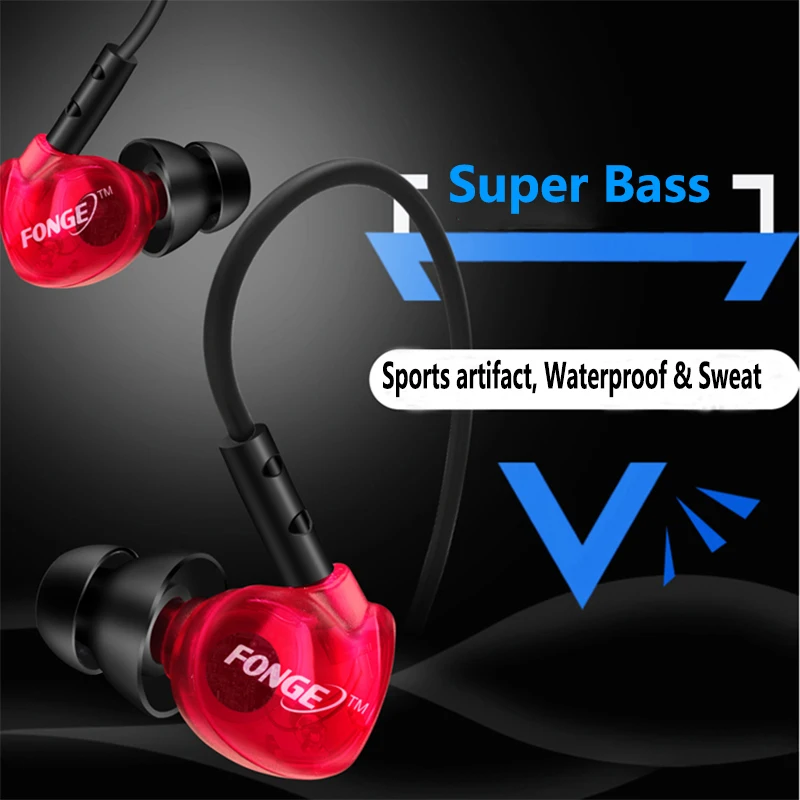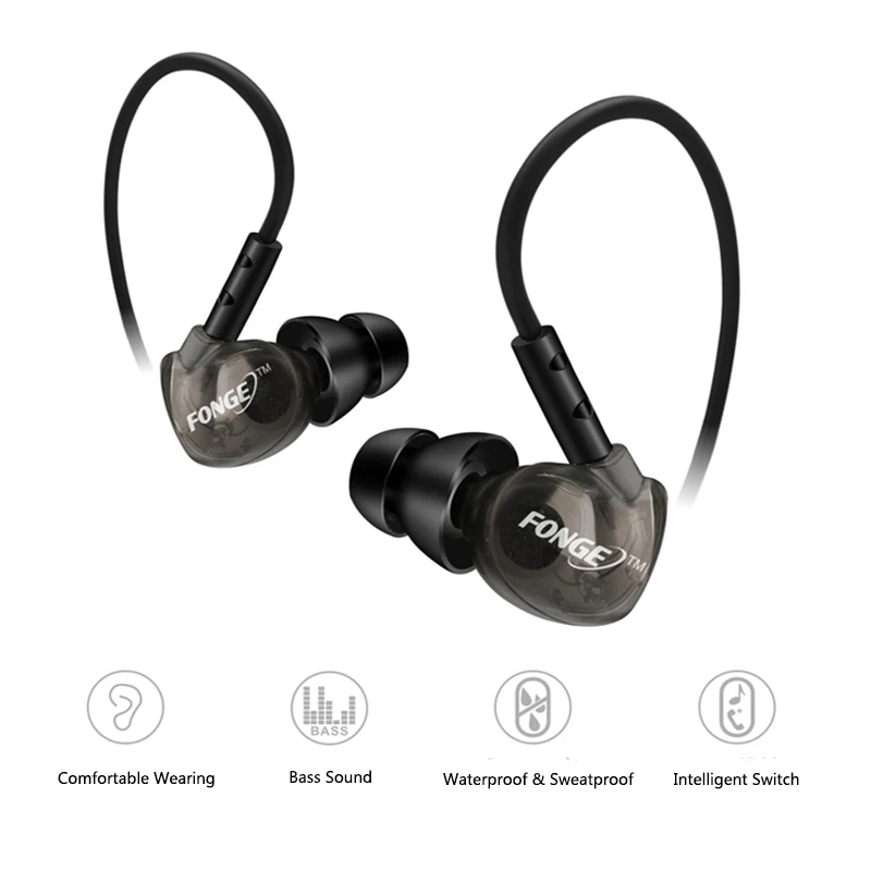 Fonge Waterproof Earphones In Ear Earbuds HIFI Sport Headphones Bass Headset with Mic for xiaomi Galaxy s6 smart phones