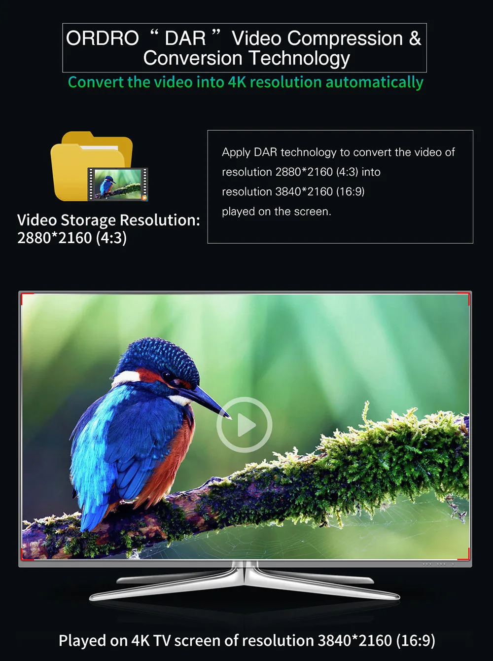 Video resolution: UHD:3840*2160(24fps) QHD: 2560*1440(30fps) FHD: 1920*1080(60fps) HD: 1280*720(120fps) VGA: 640*480(30fps)