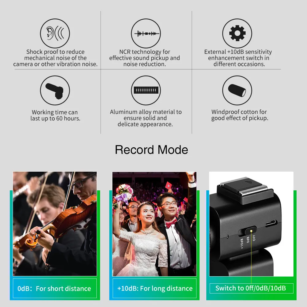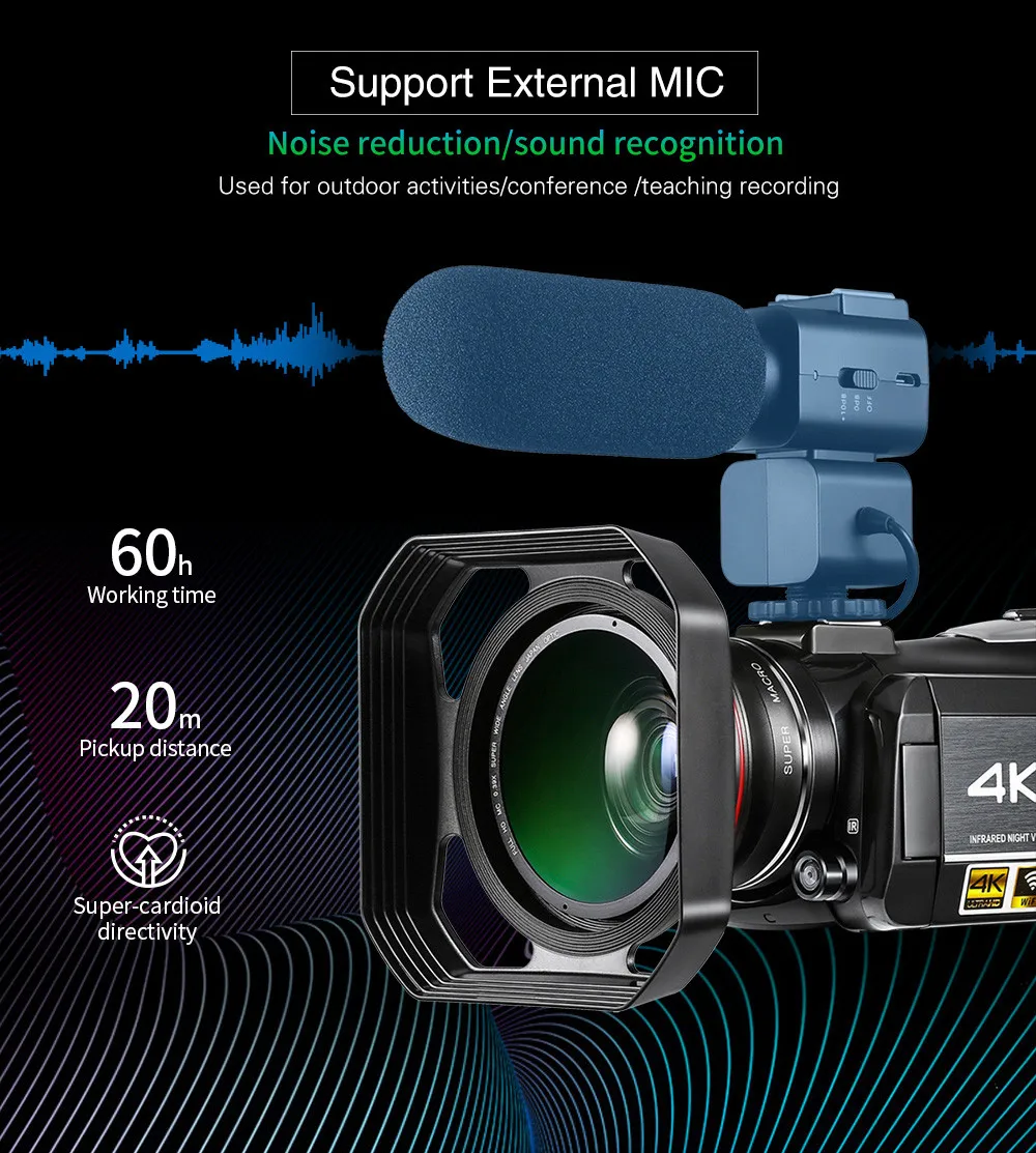 【EXTERNAL MICROPHONE】 – Video camcorder with professional high-performance, heart-shaped pickup rechargeable external shotgun interview video microphone, noise canceling effectively, to enhance sound quality.Built-in 200mAh Polymer lithium battery, and 3.5mm audio output cable.Aluminum alloy and ABS materials design.