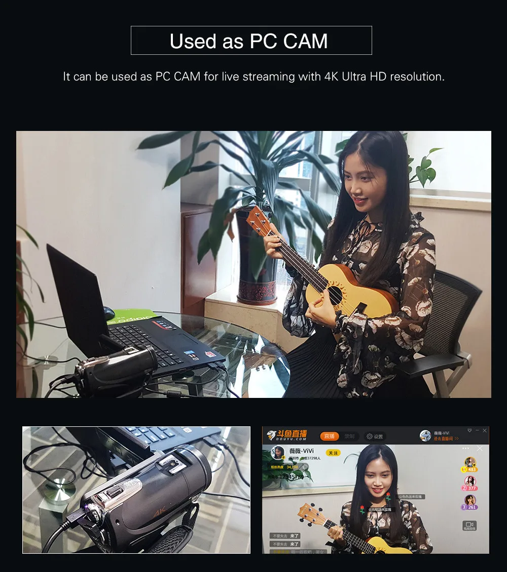 Support HDMI output to the super HD TV and connect to computer as a webcam by USB cable.