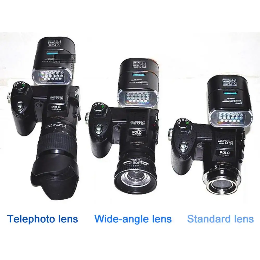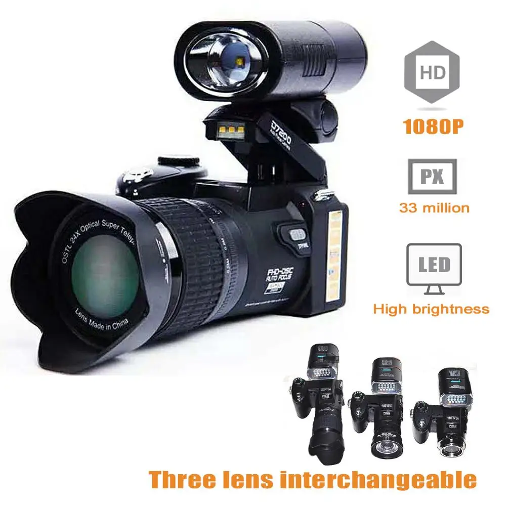 Professional Video Camera 33MP HD 1080P 24X Optical Zoom Vidicon Auto Focus Digital SLR Video Camcorder w/ Wide Angle 3 Lens