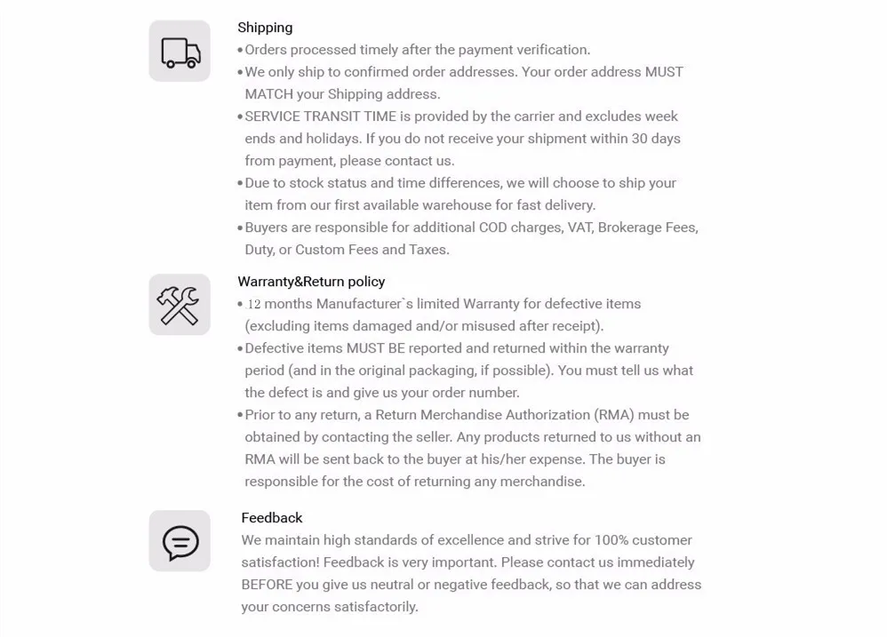 • If you received the wrong item you can request a refund or a reshipment.