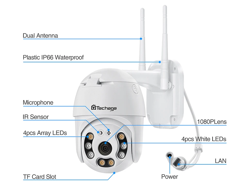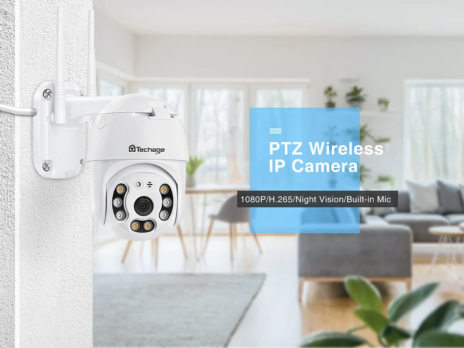 Techege 1080P Wifi PTZ Camera H.265X Waterproof Speed Dome Outdoor Wireless Camera Two Way Audio Home CCTV Surveillance Camera