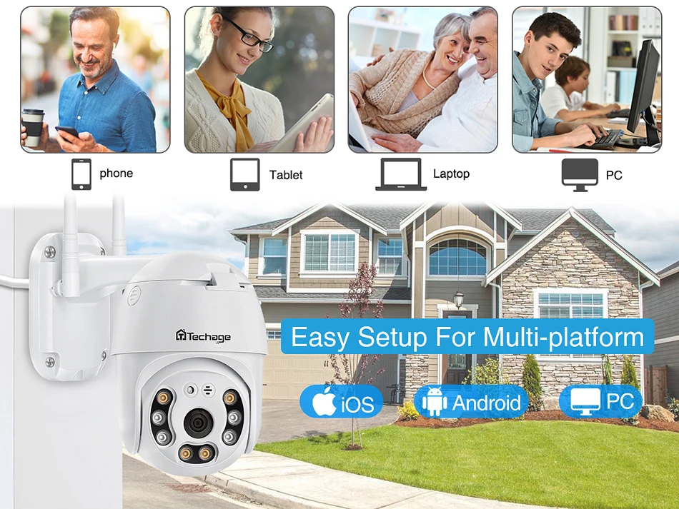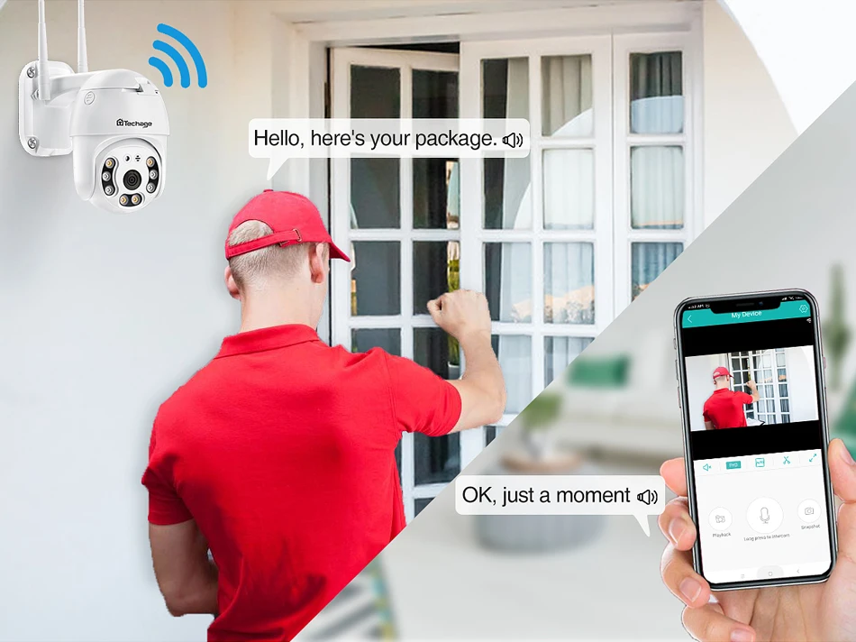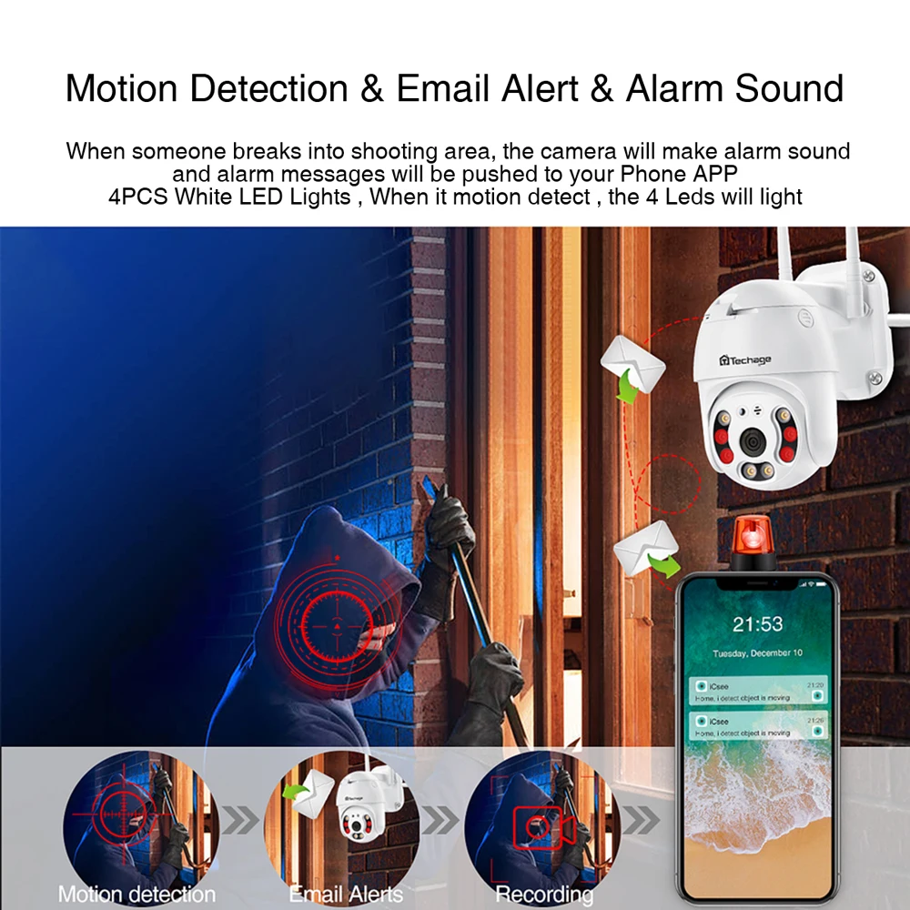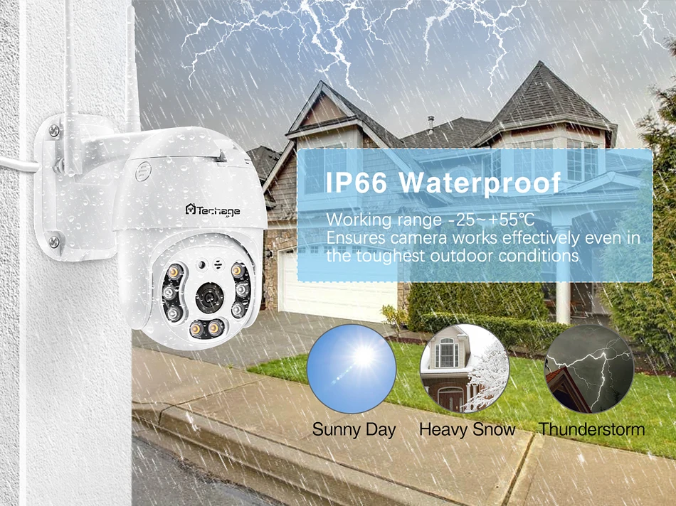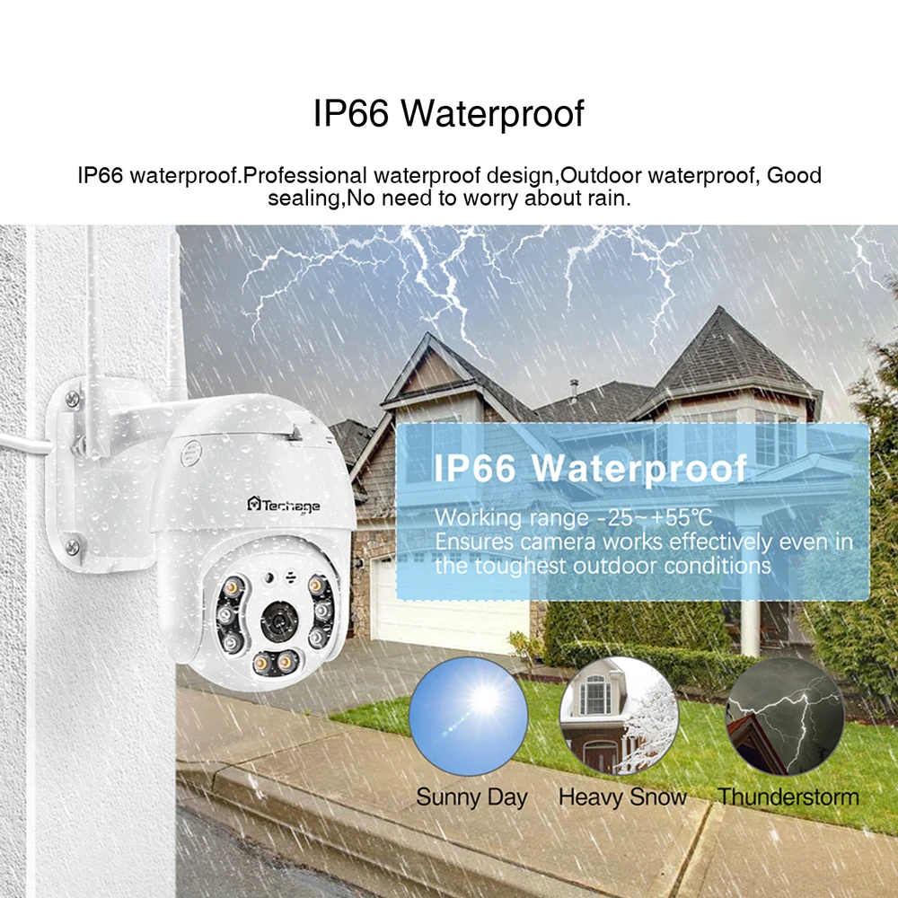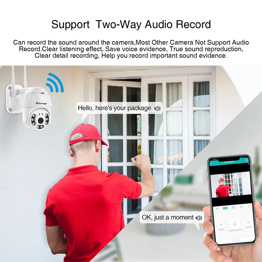 Techege 1080P Wifi PTZ Camera H.265X Waterproof Speed Dome Outdoor Wireless Camera Two Way Audio Home CCTV Surveillance Camera