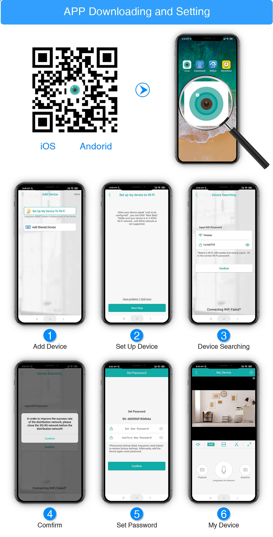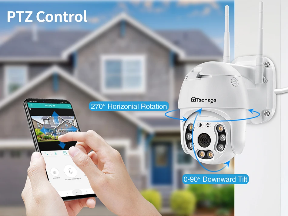 270 Degree PTZ pan/tilt rotation vertical 90 Degree, control the rotation angle through App