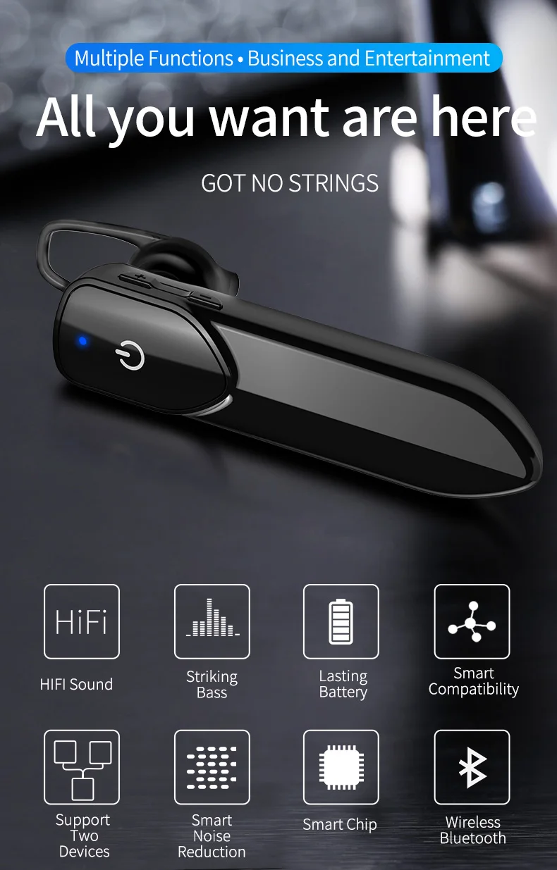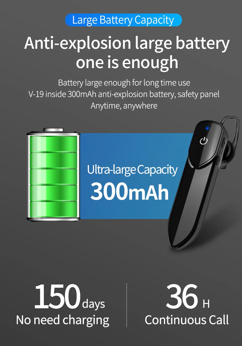 V19 Bluetooth Headphone Business Wireless Earphone Mini Handsfree Earbuds With Mic Headset Earbud Earpiece For Samsung Xiaomi